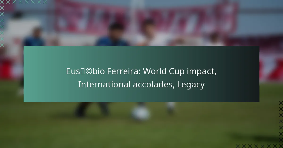 Eusébio Ferreira, a legendary figure in football, received numerous international accolades throughout his career, particularly for his performances in the FIFA World Cup and other prestigious tournaments. His contributions not only elevated his national team but also left a lasting impact on the sport globally.